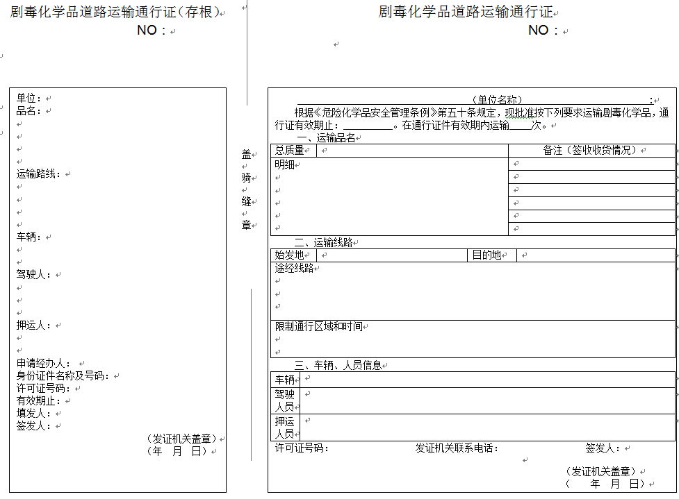 《剧毒化学品道路运输通行证》不得转让、涂改。托运人使用一张通行证件多次运输剧毒化学品的,收货单位应当在剧毒化学品道路运输通行证上分别签注每车次接收剧毒化学品情况,签注信息包括收货人姓名和日期。托运人在通行证件有效期满五日内,将《剧毒化学品道路运输通行证》送交目的地县级人民政府公安机关交通管理部门备案存查。