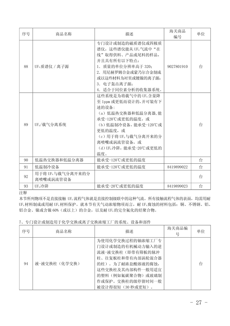 两用物项和技术进出口许可证管理目录