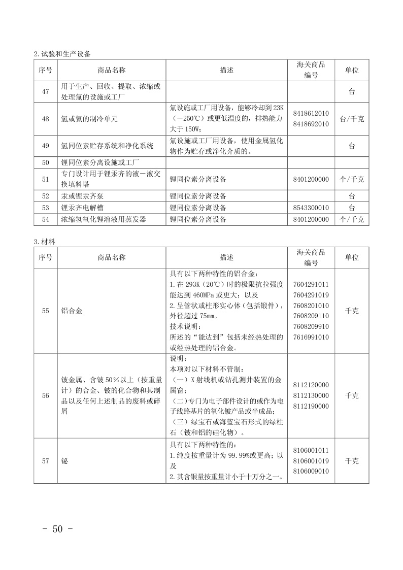 两用物项和技术进出口许可证管理目录