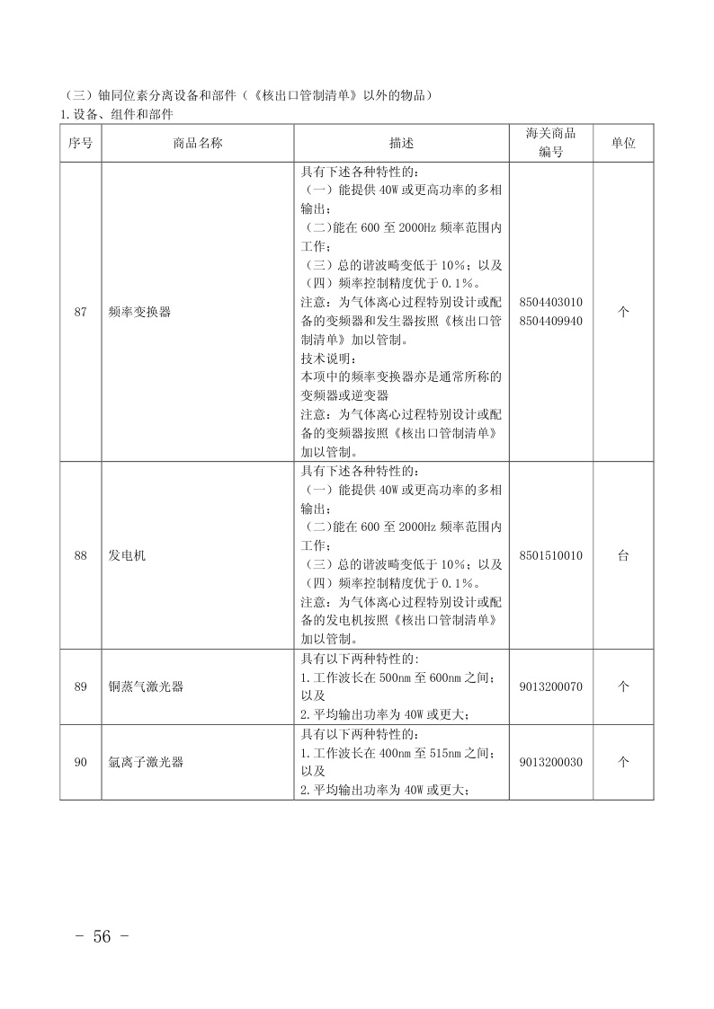 两用物项和技术进出口许可证管理目录