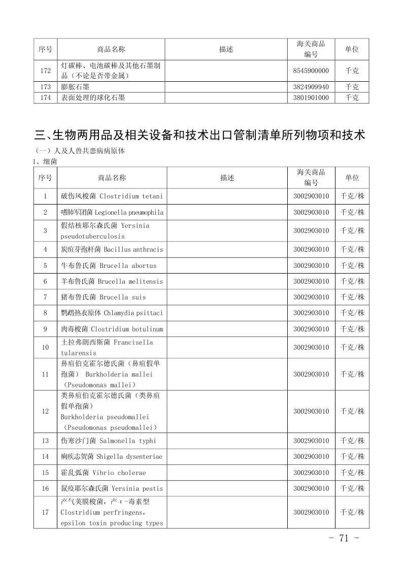 两用物项和技术进出口许可证管理目录