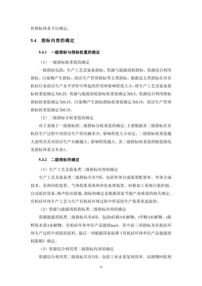 有机硅行业 清洁生产 评价指标体系 编制说明
