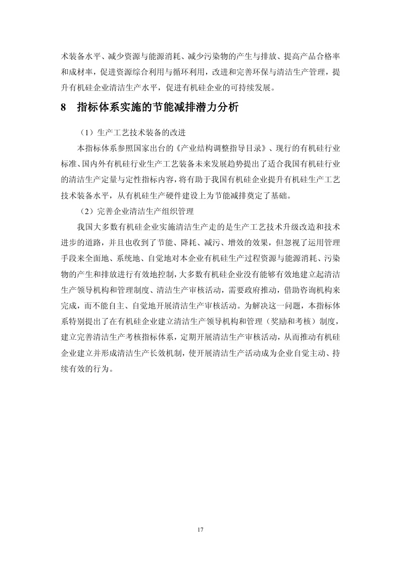 有机硅行业 清洁生产 评价指标体系 编制说明