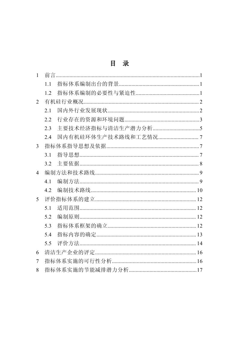 有机硅行业 清洁生产 评价指标体系 编制说明