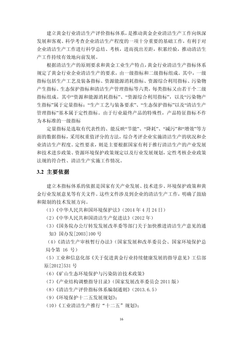 黄金行业 清洁生产 评价指标体系 编制说明
