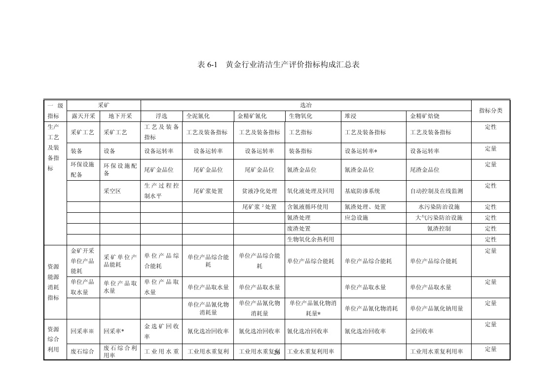 黄金行业清洁生产评价指标体系(征求意见稿)编制说明