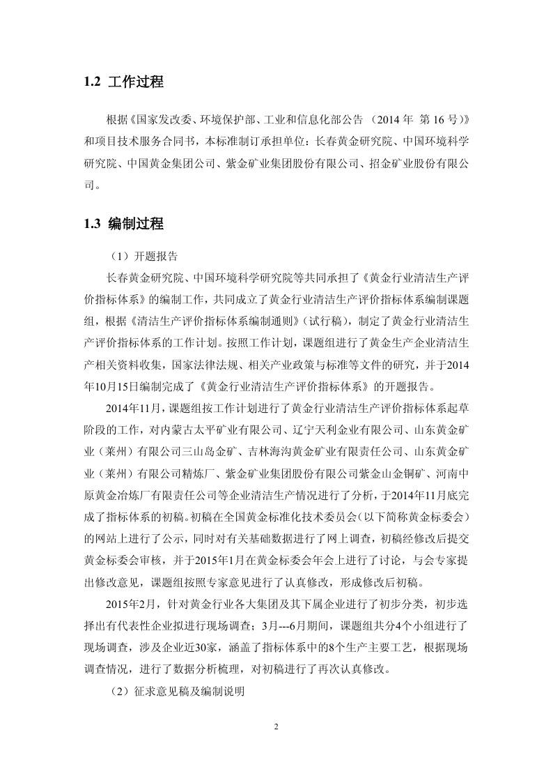 黄金行业清洁生产评价指标体系(征求意见稿)编制说明