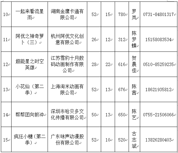 2015年,第四季度,优秀国产电视动画片,目录