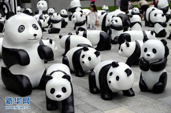 这是6月2日在上海静安嘉里中心广场拍摄的萌态百出的“熊猫”大军。 当日,“1St panda”熊猫展在上海静安嘉里中心广场开幕,100只萌态百出的“熊猫”集体亮相,惹人喜爱。据悉,这些“大熊猫”由毛竹的边角料制作而成,旨在唤起人们重视环境保护。新华社发(赖鑫琳摄)
