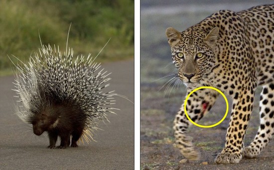 南非饥饿猎豹欲捕食豪猪反被刺伤(组图)