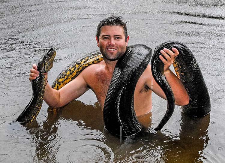 据英国《每日邮报》8月5日报道,美国加州26岁男子福瑞斯特·加兰特(Forrest Galante)已经去过40多个国家,曾与世界上最危险的动物自拍留影,包括亚马逊6米多长的巨蟒、巴哈马群岛中的鲨鱼以及印尼的科莫多巨蜥等。