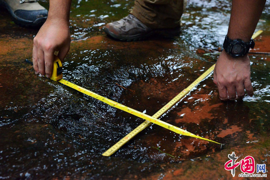 2014年9月15日,专家在四川省泸州市叙永县大石乡龙井村发现的蜥脚类恐龙足迹。 中国网图片库刘传福摄影
