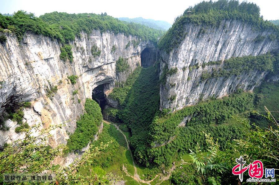 在武隆,三座喀斯特天生桥,分布在同一峡谷的1.5公里的范围内,桥间又是天坑,这在世界上可能是别无二例。中国网图片库 渝钟/摄
