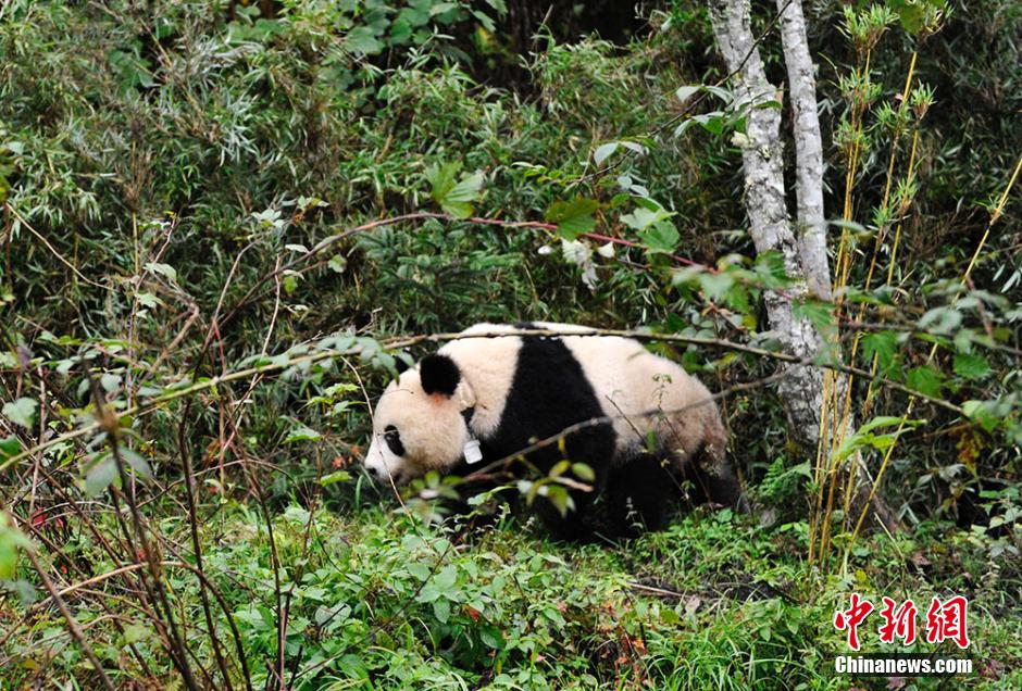 10月14日,由国家林业局和四川省人民政府共同举办的大熊猫“雪雪”放归自然活动在四川雅安栗子坪国家级自然保护区举行,2岁零2个月的大熊猫“雪雪”走出放归笼,回归大自然。这是继大熊猫“祥祥”、“淘淘”和“张想”放归之后,我国放归的第四只人工繁育的大熊猫。安源摄