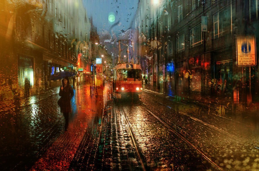 俄罗斯摄影师在雨天捕捉到了十分美丽的街景,雨水冲刷过后的城市在他的镜头下变成了五彩斑斓的色块世界,朦胧,虚幻,行人的伞点缀在其间,宛如一幅油画般。