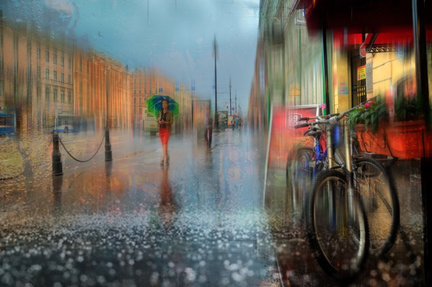 俄罗斯摄影师在雨天捕捉到了十分美丽的街景,雨水冲刷过后的城市在他的镜头下变成了五彩斑斓的色块世界,朦胧,虚幻,行人的伞点缀在其间,宛如一幅油画般。