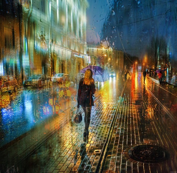 俄罗斯摄影师在雨天捕捉到了十分美丽的街景,雨水冲刷过后的城市在他的镜头下变成了五彩斑斓的色块世界,朦胧,虚幻,行人的伞点缀在其间,宛如一幅油画般。