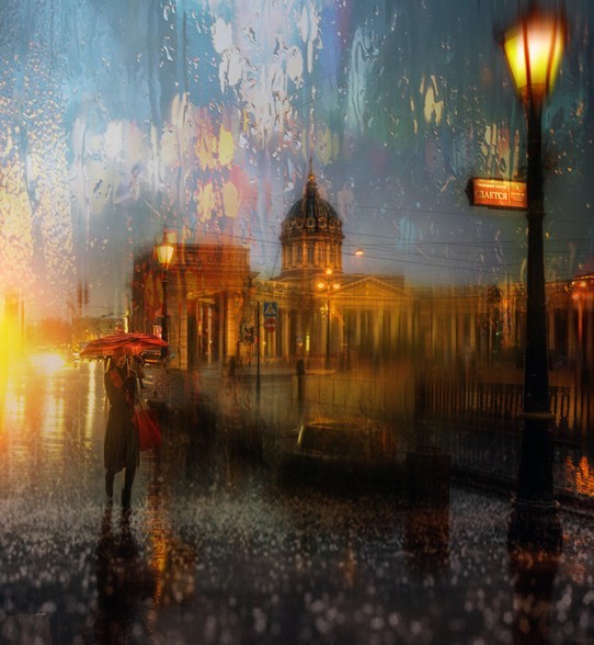 俄罗斯摄影师在雨天捕捉到了十分美丽的街景,雨水冲刷过后的城市在他的镜头下变成了五彩斑斓的色块世界,朦胧,虚幻,行人的伞点缀在其间,宛如一幅油画般。