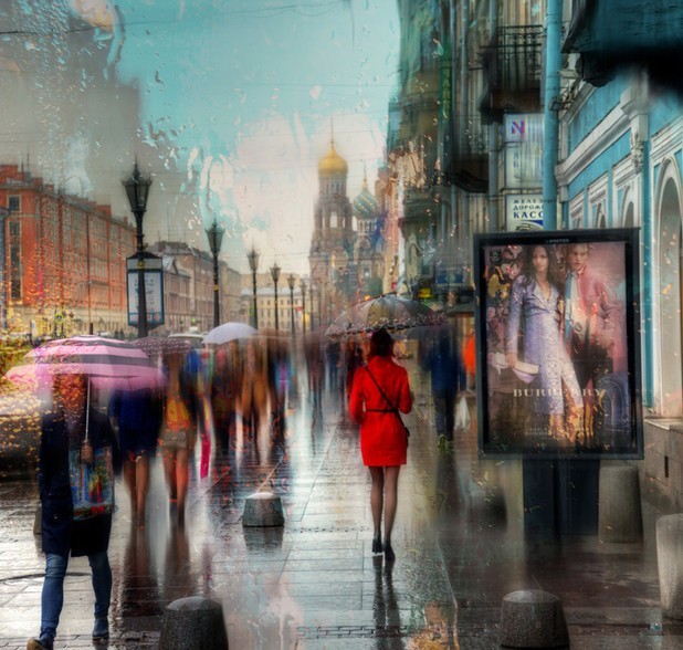 俄罗斯摄影师在雨天捕捉到了十分美丽的街景,雨水冲刷过后的城市在他的镜头下变成了五彩斑斓的色块世界,朦胧,虚幻,行人的伞点缀在其间,宛如一幅油画般。