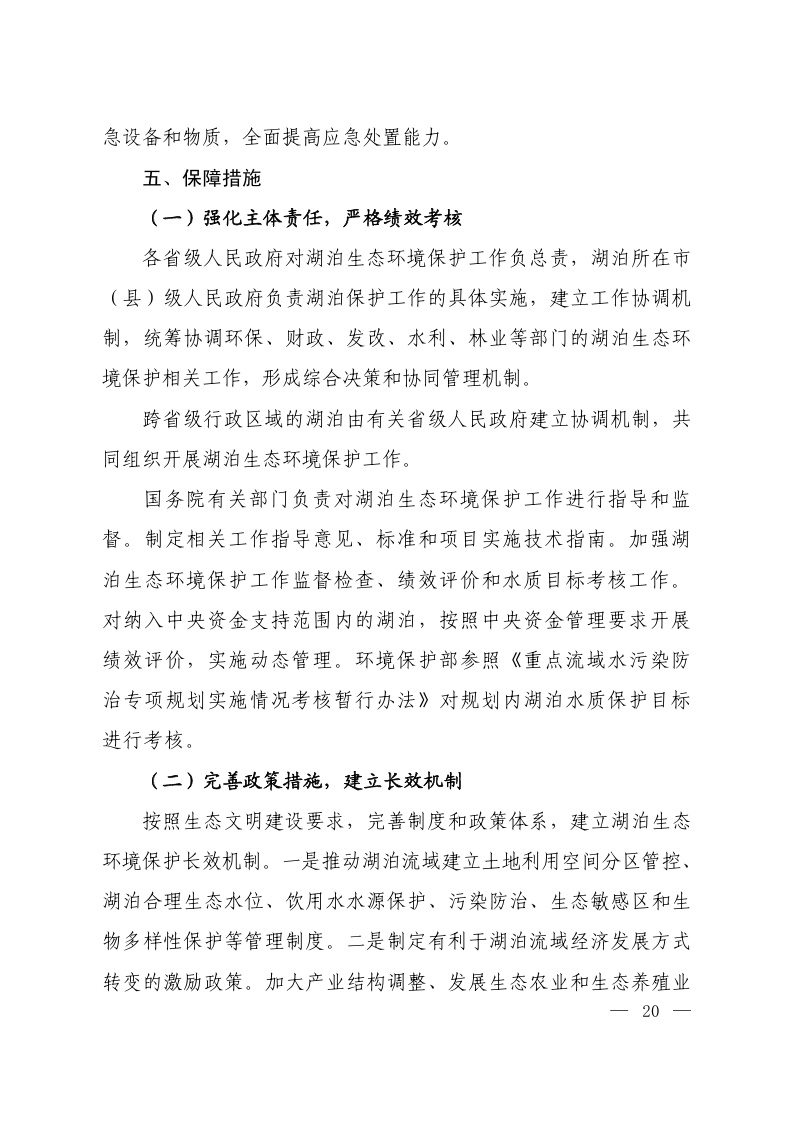 水质 湖泊 生态环境 保护 规划