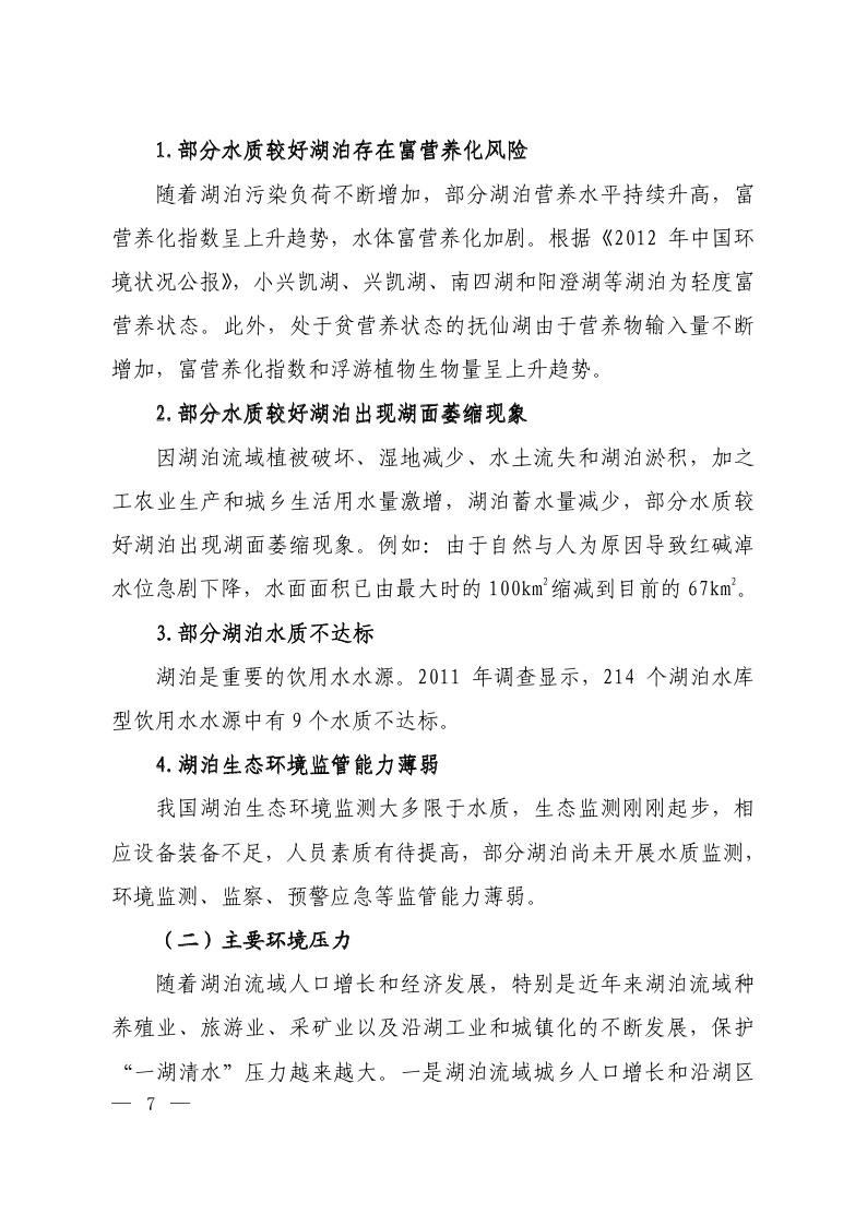 水质较好湖泊生态环境保护总体规划(2013-2020年) (全文)