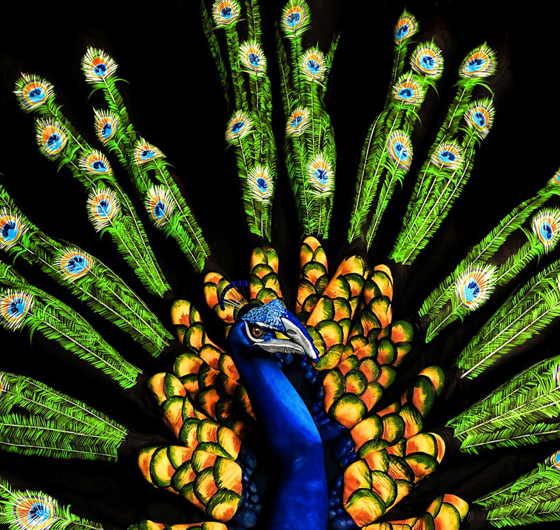 英国艺术家创作人体彩绘鸟类造型图 栩栩如生(图)