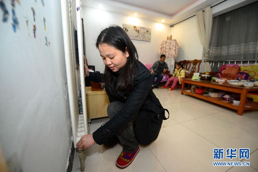 吴林宏在家中调节暖气片的档位(1月13日摄)。