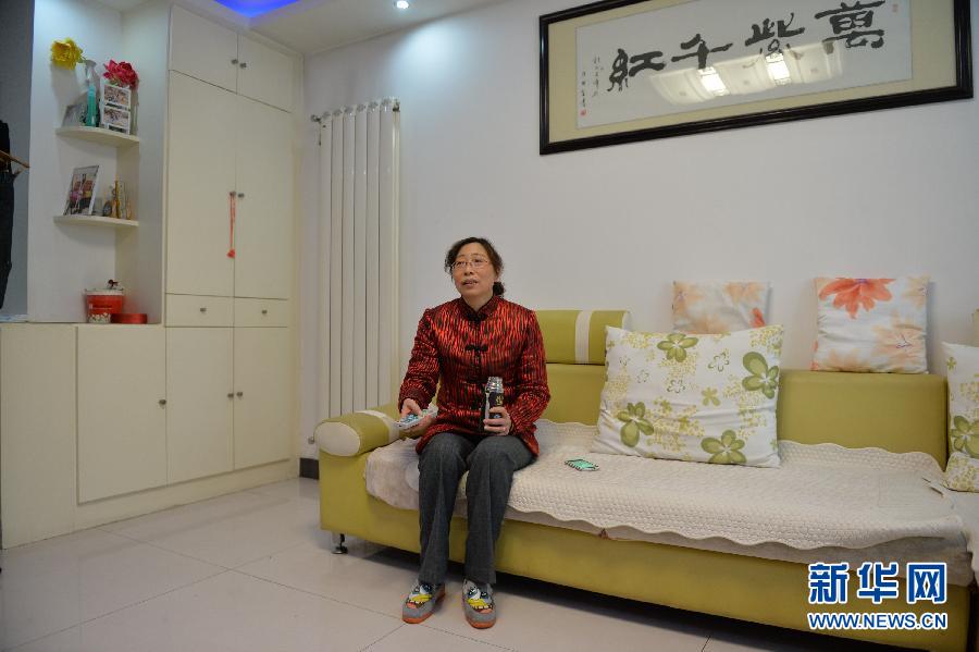 江苏省淮安市一集中供暖小区居民赵丽华在家中客厅观看电视(1月6日摄)。新华社记者 沈鹏 摄