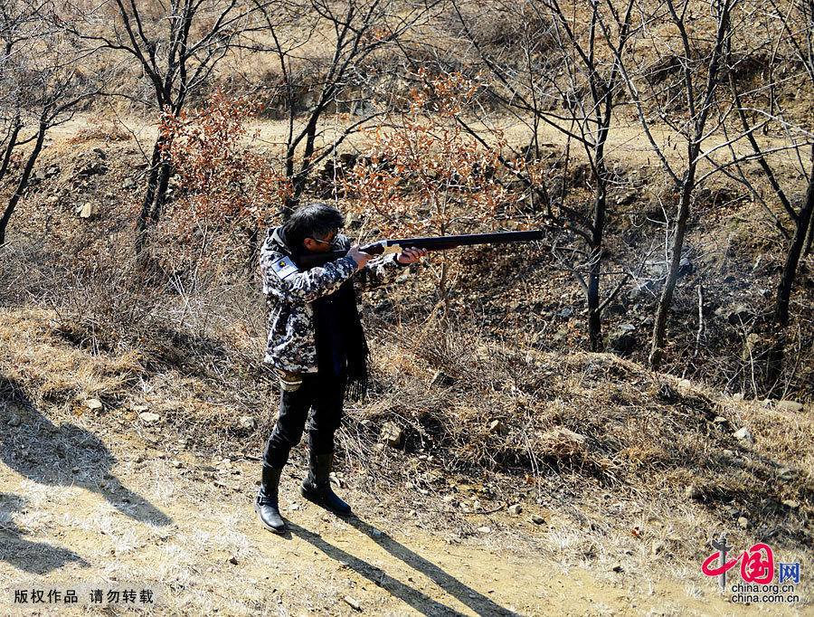 2015年2月1日上午,山东黑虎山狩猎场,标主在导猎人员的陪同下,全副武装在狩猎区打响了黑虎山狩猎场“第一枪”。 陈为峰摄影中国网图片库