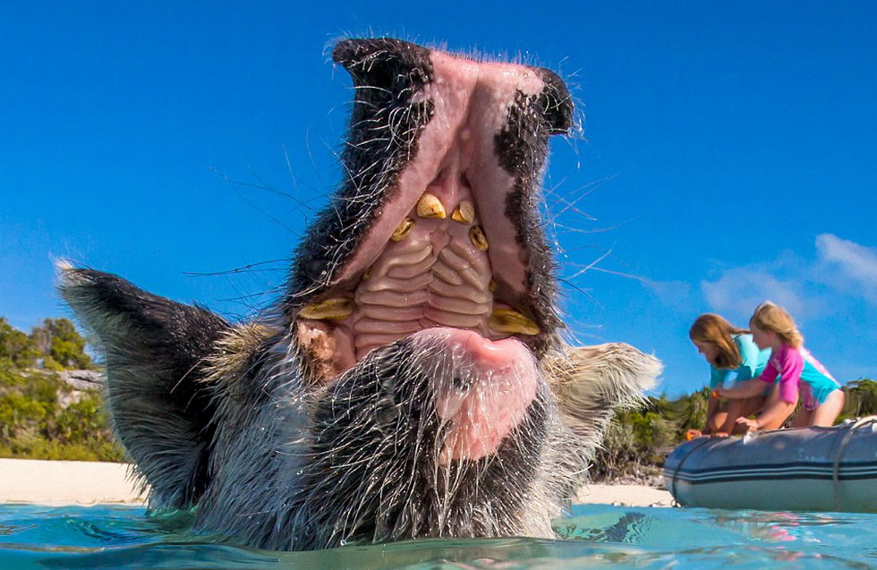 巴哈马小猪的幸福生活:游泳晒太阳 不愁吃喝[组图]