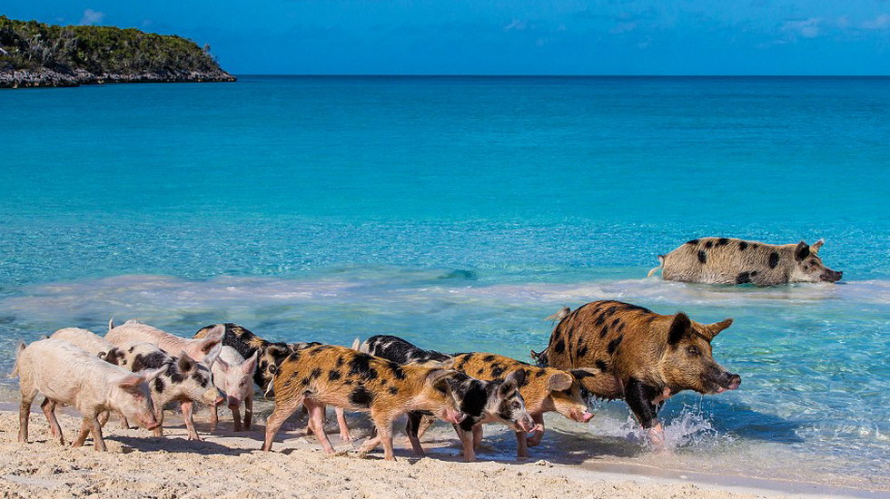 巴哈马小猪的幸福生活:游泳晒太阳 不愁吃喝[组图]