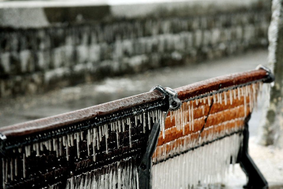 瑞士日内瓦遭"鬼天气" 岸边瞬间结冰[组图]