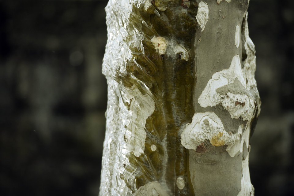 当地时间2月6日,韦尔苏瓦镇莱蒙湖河堤附近矗立着的树木,其树干蒙上了一层厚厚的冰。(网站截图)
