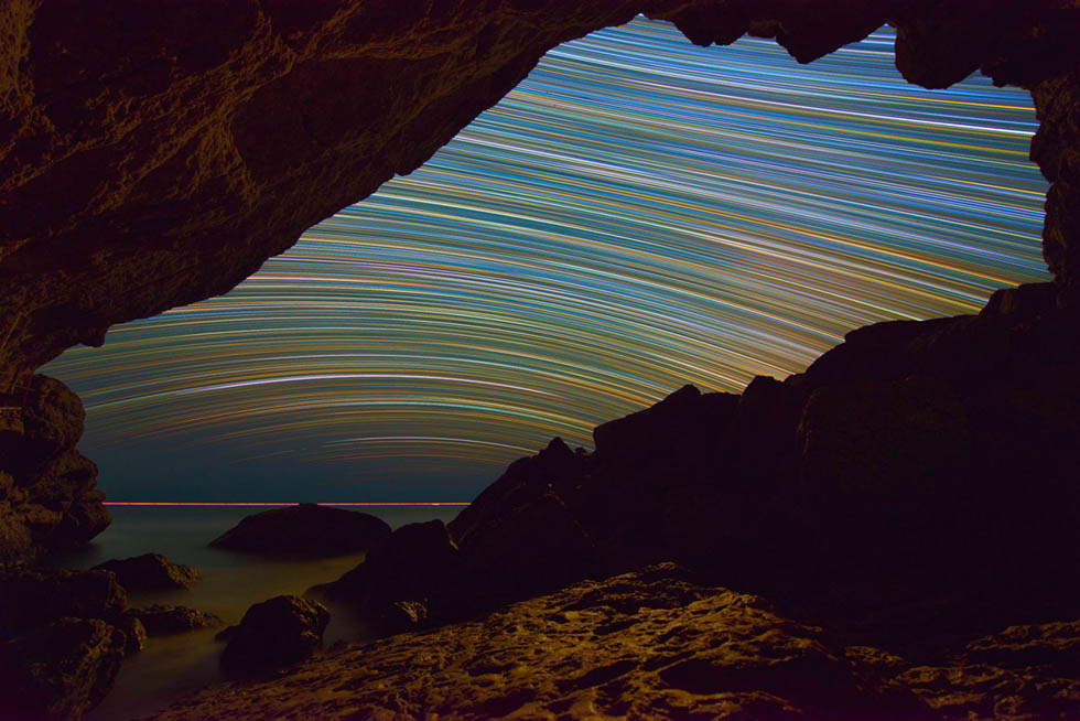 俄摄影师拍夜空星轨图 绚丽如万花筒