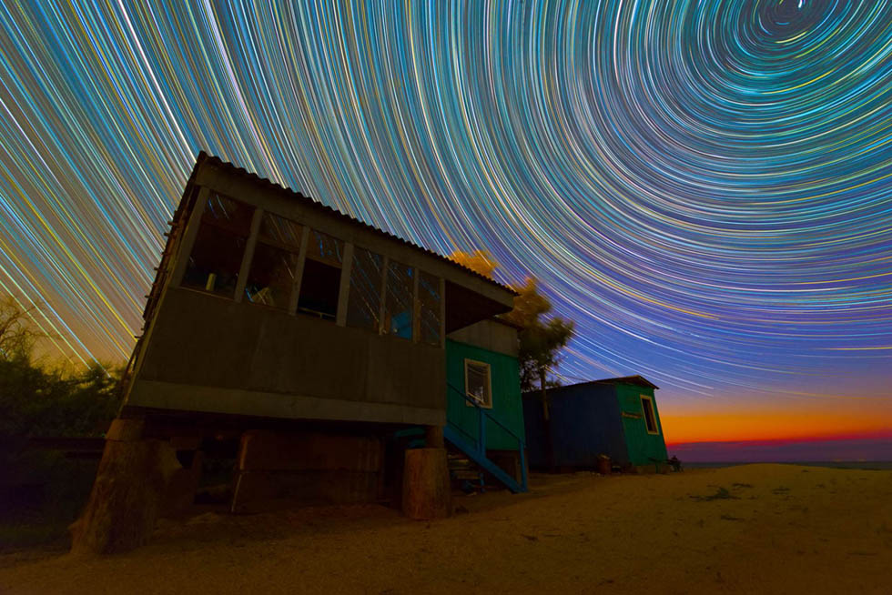 俄摄影师拍夜空星轨图 绚丽如万花筒