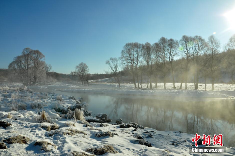 3月4日,内蒙古大兴安岭阿尔山国家森林公园的不冻河。全长20公里的不冻河位于兴安盟阿尔山市境内,是距市区74公里处的哈拉哈河的一段河流,这处河段严冬从不封冻,故称之为“不冻河”。三九严寒,滴水成冰,市境内所有大河小溪皆封冻,唯有此段河水热气腾腾,流水淙淙,多少年来从未结冰,令人称奇。水中还长着青青的水草;河面上云蒸霞蔚,河岸边雾凇晶莹,景色十分壮观。阿尔山是中国境内的第七处活火山群,地下冷热泉水储量丰富,是由于该河段附近有大量的地热存在,自然形成了不冻河地质奇观。 中新社发 余昌军摄图片来源:CNSPHOTO