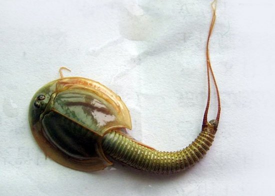 三眼恐龙虾,学名佳朋鲎虫。是已知的鲎虫中中国唯一发现的一种。属足亚纲,背甲目,是一类小型的甲壳动物。