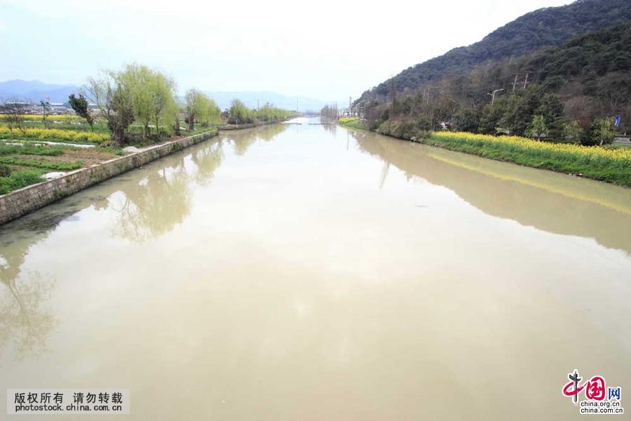 2015年3月26日中午,浙江绍兴市区富有深厚的历史文化底蕴、两岸风光旖旎的著名小溪——若耶溪因上游河道内打桩施工,导致下游数公里长河水变身泥浆水,远远望去浑浊不堪、恰似“黄河”。中国网图片库 作者:李瑞昌