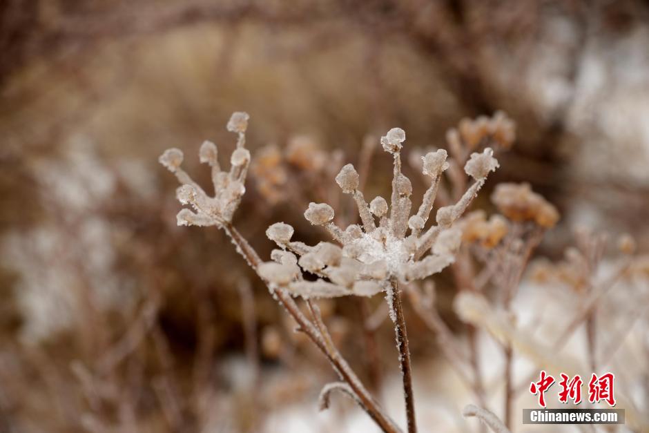 4月2日,受持续低温雨雪天气影响,在山西省忻州五台山风景名胜区,出现出现罕见雨凇奇观,广大游客和摄影爱好者们沉浸在琉璃世界,流连忘返。据五台山气象站工作人员介绍,出现雾凇次数比较多,但雨凇现象很少,近年来仅在2010年3月份出现过一次。雨凇,俗称“树挂”,也叫冰凌、树凝,是超冷却的降水碰到温度等于或低于零摄氏度的物体表面时所形成玻璃状的透明或无光泽的表面粗糙的冰覆盖层。五台山位于山西省忻州市东北部,是世界闻名的佛教圣地,国家5A级旅游区,位居中国佛教四大名山之首,2009年6月26日被列入世界文化景观遗产名录。焦瑾琦摄