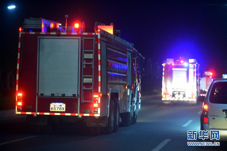 4月7日,消防车辆赶往事故现场。据福建省安监局消息,4月6日18时56分许,漳州市古雷腾龙芳烃二甲苯装置发生漏油起火事故,截至发稿时,中间罐区仍有2个重石脑油和1个重整液储罐着火。漳州市消防支队正在现场处置,保护中间罐区周边的储罐和装置。目前有1人受伤,另有5人被玻璃刮伤,已送医院救治。新华社记者魏培全摄