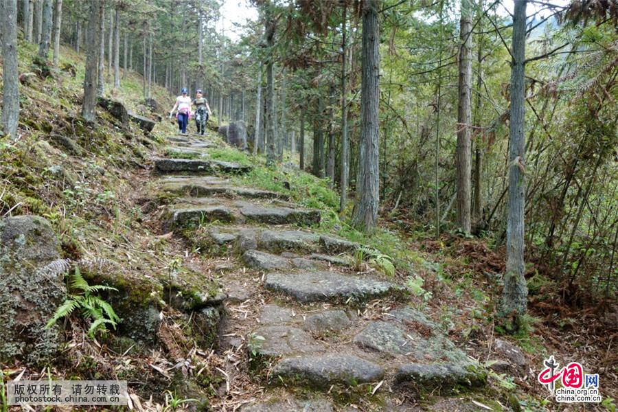 2015年4月4日,江西省井冈山市长坪乡通往湖南的“茶盐古道”,途中穿越海拔1800多米的江西坳,沿途有次原始森林、高山杜鹃、竹海、草甸,风光秀美。中国网图片库 肖远泮/摄