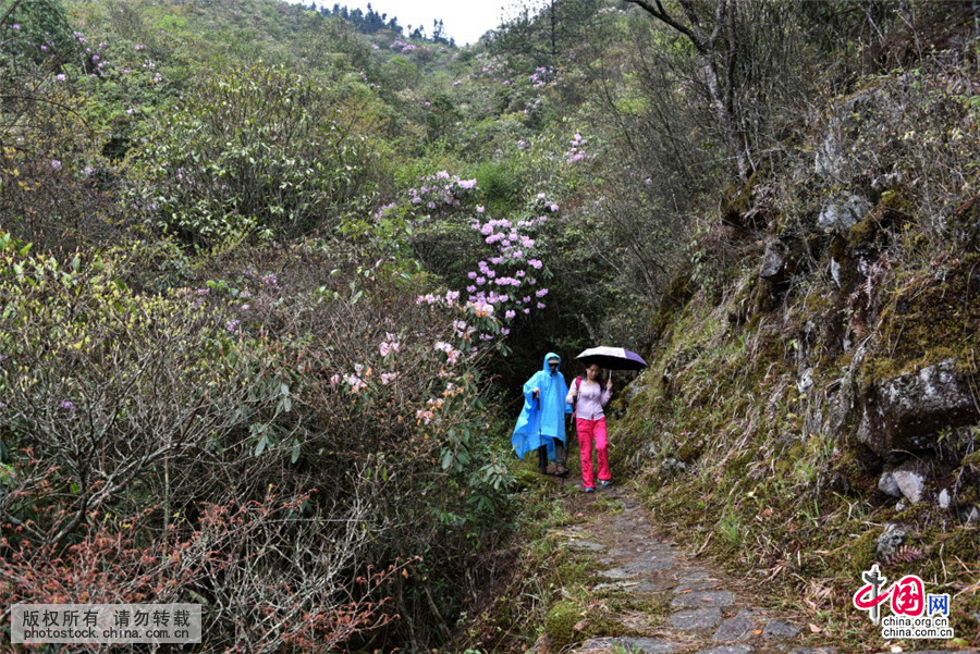2015年4月4日,江西省井冈山市长坪乡通往湖南的“茶盐古道”,途中穿越海拔1800多米的江西坳,沿途有次原始森林、高山杜鹃、竹海、草甸,风光秀美。中国网图片库 肖远泮/摄