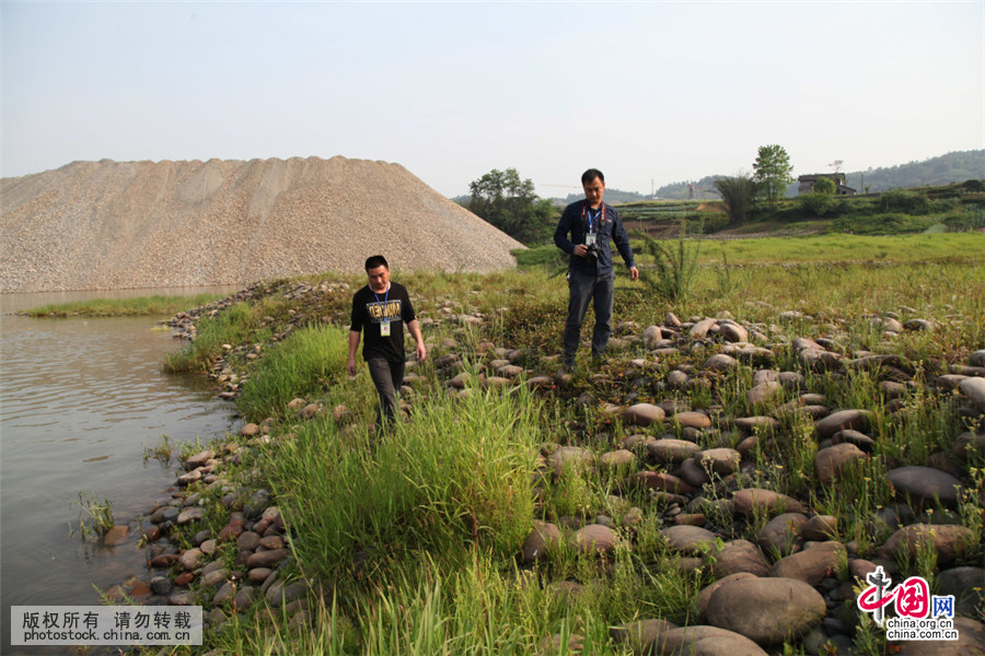 2015年4月14日,四川省泸州市纳溪区林业局工作人员在新乐镇三江村长江边上察看极度濒危灭绝物种——疏花水柏枝的长势情况。中国网图片库 刘传福/摄