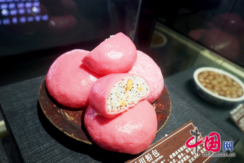 望海楼中展示的煮饭用粉包(摄影 中国网/冯竹)