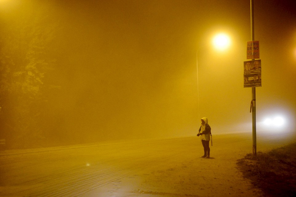 当地时间2015年4月23日,智利ENSENADA,22日,Calbuco火山在40年后爆发,附近的城市地面、屋顶上留下了厚厚的一层灰,整座城市变成了灰色。目前已有4000多人撤离。