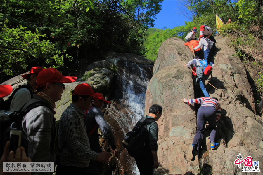 2015年4月25、26日,来自上海、南京、无锡、徐州、淮安等地的1000多名游客,带着家人不约而同来到安徽省宁国市万家乡境内吴越古道,徒步穿越体验吴越古道的艰险。中国网图片库 作者:杨彬