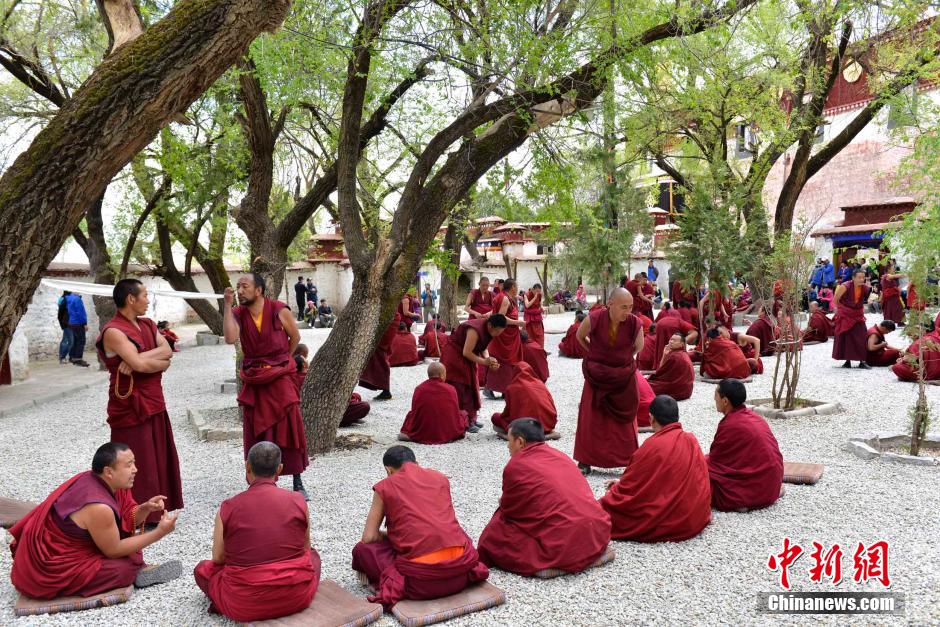 5月5日,色拉寺内的僧人们正在辩经。辩经是一种别开生面的学经方式,僧人们通过激烈的问答、辩论,互相检验学经成果。藏传佛教各寺庙均有辩经,其中以色拉寺辩经最为著名。色拉寺是藏传佛教著名寺庙,该寺位于西藏自治区拉萨市北郊的色拉乌孜山脚下,距今已有近600年历史,是中国藏传佛教格鲁派六大寺之一。李林摄