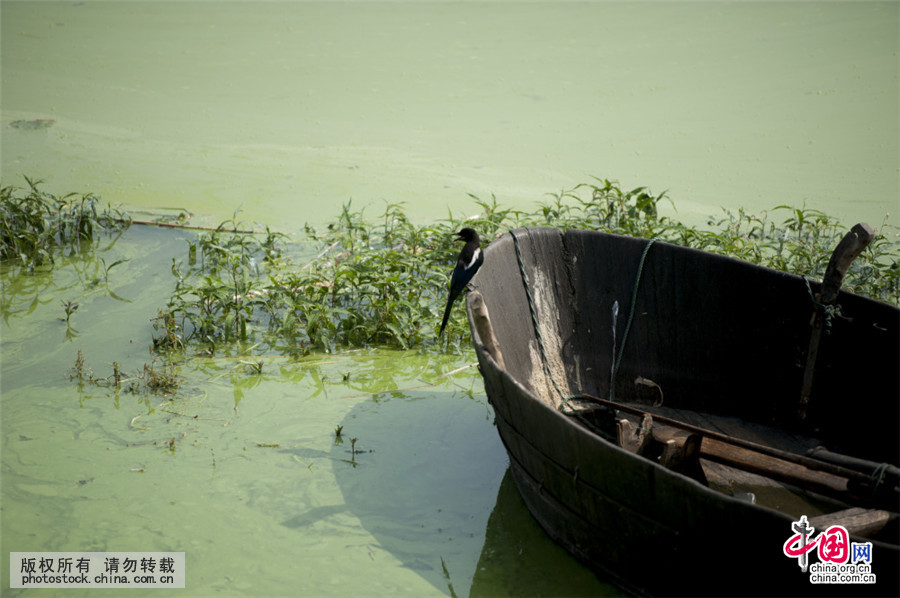 2015-07-01,安徽巢湖芦溪湿地出现蓝藻,味道难闻,希望政府加大治理蓝藻力度,保护环境,刻不容缓。中国网图片库 王骏/摄