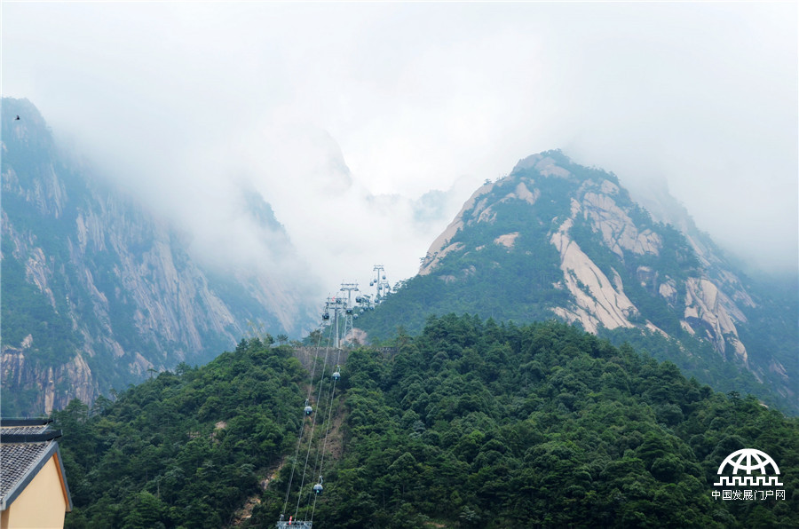 中国发展门户网讯(方立华)8月13日,安徽黄山风景区云雾缭绕,群峰时隐时现;流云与奇松,怪石、清泉、日出等景观,构成了一幅幅泼墨山水画。旅游公路上的大巴,川流不息;游道和景点上的游客摩肩接踵。据了解,暑假以来,黄山风景区每天进山游客在2万人左右。这是当天在玉屏景区拍摄的照片。