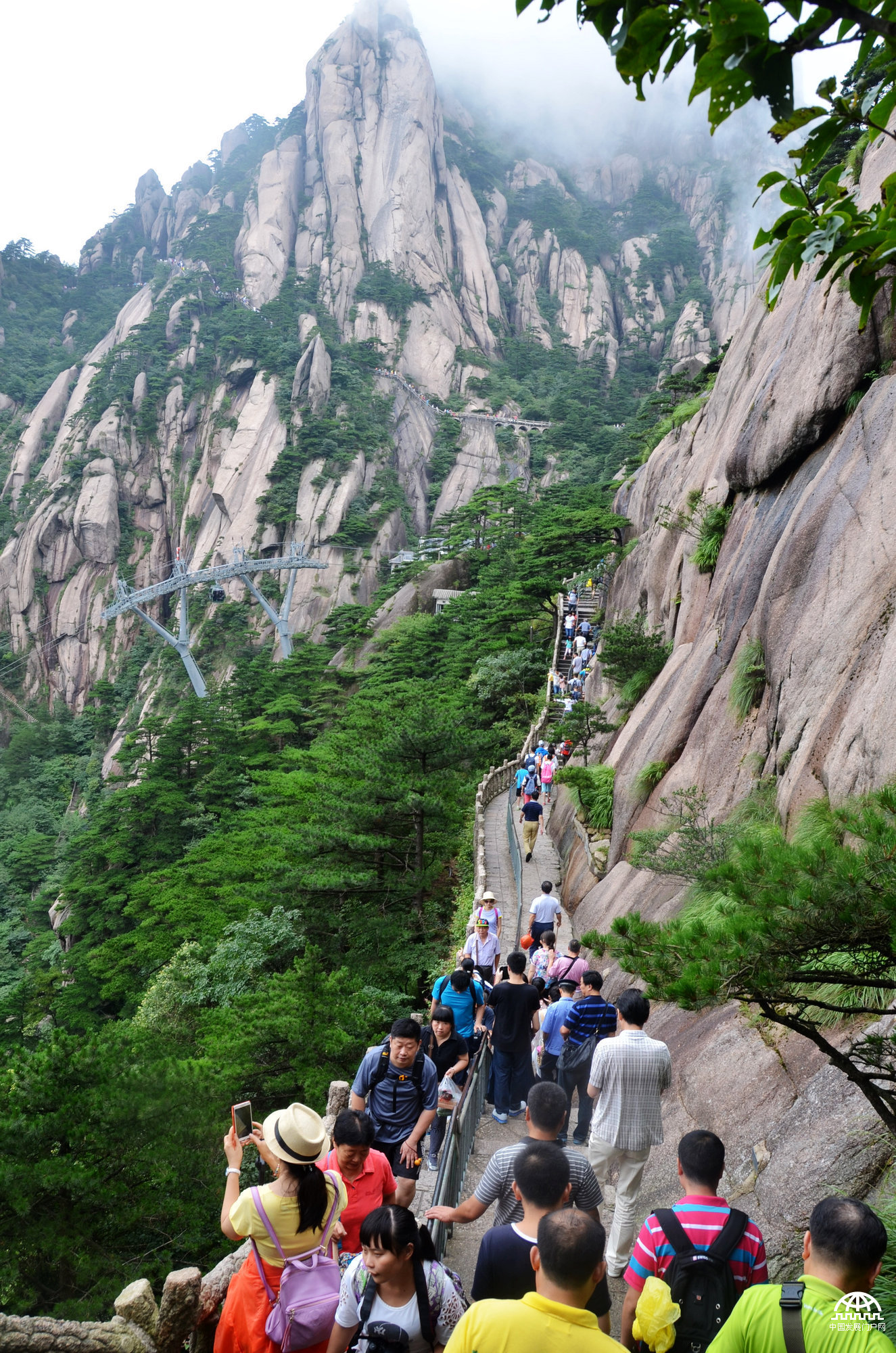 中国发展门户网讯(方立华)8月13日,安徽黄山风景区云雾缭绕,群峰时隐时现;流云与奇松,怪石、清泉、日出等景观,构成了一幅幅泼墨山水画。旅游公路上的大巴,川流不息;游道和景点上的游客摩肩接踵。据了解,暑假以来,黄山风景区每天进山游客在2万人左右。这是当天在玉屏景区拍摄的照片。
